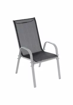 VCM. 4er Set Stapelstuhl Rahmen Hellgrau Textilene Schwarz Gartenstuhl Stapelsessel Schwarz