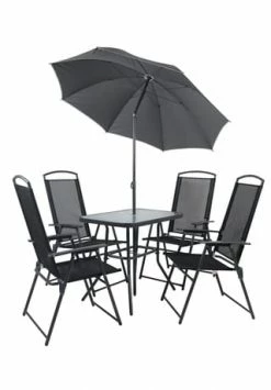 VCM. 5-teiliges Gartenmöbel-Set Schwarz Grau Gartengarnitur Stapelstühle + Esstisch Schwarz