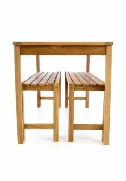 VCM. Gartenmöbelset Picknickset Sitzgruppe Teakholz Behandelt Bank Tisch 135cm Braun