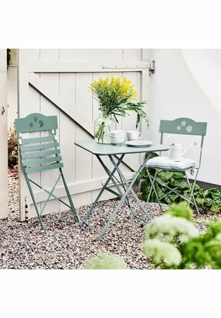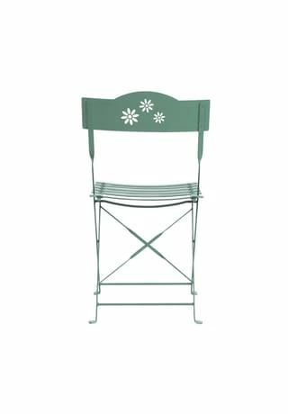 Sobald 3er Set Daisy Jane aus Eisen im Freien steht, zwitschern die Vögel, tanzen die Sonnenstrahlen und das Gute-Laune-Barometer steht auf “besser geht´s nicht”. Denn die Daisy Jane Gartenmöbel versprühen Leichtigkeit pur – mit zwei Klappstühlen (mit Blumen-Ausstanzung in der Rückenlehne und Sitzfläche aus Latten) und dem Klapptisch haben Sie Ihr Komplettset – im jungen Look, platzsparend und vielseitig.