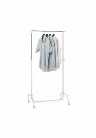 Der höhenverstellbare Garderobenwagen TIGER hilft Ihnen Ordnung zu Halten. Die 2 Flügelschrauben machen das Verstellen der Höhe zum Kinderspiel und die 4 Doppelrollen ermögliche zudem ein problemloses Verschieben des Garderobenständers. Hemde, Blusen oder Jacken können knitterfrei und griffbereit an der großen Kleiderstange aufgehängt werden. Der Kleiderständer ist super mit anderen Möbeln kombinierbar und integriert sich so perfekt in den vorhandenen Einrichtungsstil. Materialbeschreibung: Der Garderobenwagen ist aus verchromtem und lackiertem Metallrohr gefertigt. Ausstattung / Merkmale des Produkts: mit 1 höhenverstellbaren Kleiderstangen 2 komfortable Flügelschrauben inkl. 4 Doppelrollen Maximale Belastbarkeit: 8 kg Versand & Montage: Lieferumfang: Garderobenwagen inkl. Montageanleitung Der Artikel wird zerlegt geliefert Kundenfreundliche Montage mit Hilfe der beigelegten Aufbauanleitung Lieferung erfolgt per Paketdienst Lieferung erfolgt ohne Dekoration