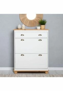 Landhaus-Konsole im französischen Stil: Aus Tannenholz mit feinem Antik-Finish. Handbearbeitet mit einer hübschen Farblasur. Die elegant geschwungenen, schlanken Beine sowie die klassische Blende unterhalb der Schublade unterstreichen den antik anmutenden Stil.