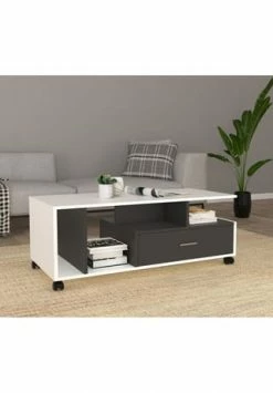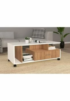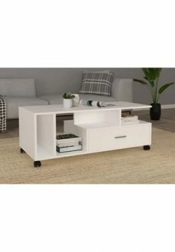 VCM. – My Home Holz Beistelltisch Couchtisch Sofatisch Wohnzimmertisch Rollen Schublade Silus Weiß