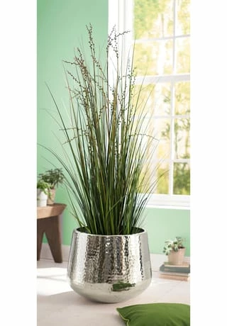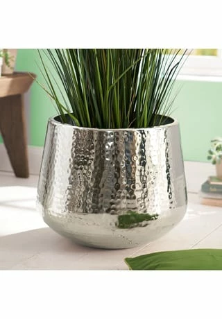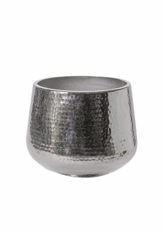 Hochwertig per Hand gearbeiteter Übertopf aus Aluminium.