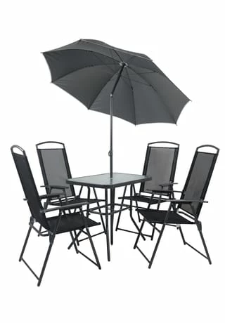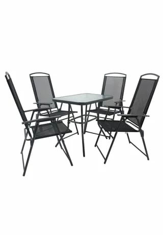 Highlights Tisch: – Tisch-Maße ca. H. 70 x B. 80 x T. 55 cm – Farbe: Anthrazit – Tischplatte aus ESG-Sicherheitsglas Highlights Stühle: – Stuhl-Maße ca. H. 105 x B. 61 x T. 56 cm – Farbe: Anthrazit – Stühle platzsparend zusammenklappbar – Hohe Rücklehne für ein angenehmes verweilen Die textilene Sitzgruppe wird mit einem Tisch 80 x 55 cm und bequemen Klappstühlen geliefert. Die Möbel bestehen aus sehr hochwertigem Stahl und sind damit äußerst wetter- und UV-beständig. Der robuste Tisch hat eine Platte aus Sicherheitsglas. Die hohe Rückenlehnen spendet zusätzlichen Komfort. Bei Nichtgebrauch können die Stühle platzsparend zusammengeklappt werden. VCM hat sich seit den 70er-Jahren auf die Konstruktion, Produktion und Vertrieb von Möbeln mit einem fairen Preis/Leistungsverhältnis spezialisiert und damit bereits Millionen Haushalte verschönert.